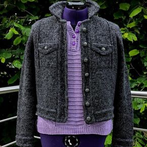 [Вяжи.ру] Вязаный спицами жакет в стиле джинсовой куртки White Jeans (Hinterm Stein)