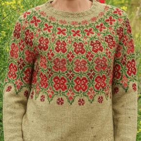 [Вяжи.ру] Вязаный спицами жаккардовый пуловер с цветами Golden Poppy Sweater (Elenor Mortensen) 2025