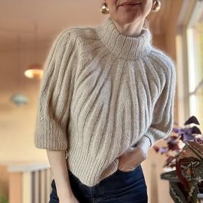 [Вяжи.ру] Пуловер спицами сверху на круглой кокетке резинкой Quiet Stripes (Анна Энге) 2025
