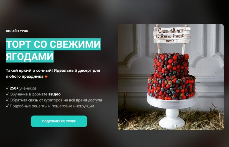 - Видеоурок с начинкой «Марципановый бисквит с пряной вишней и сливочно-творожным кремом»