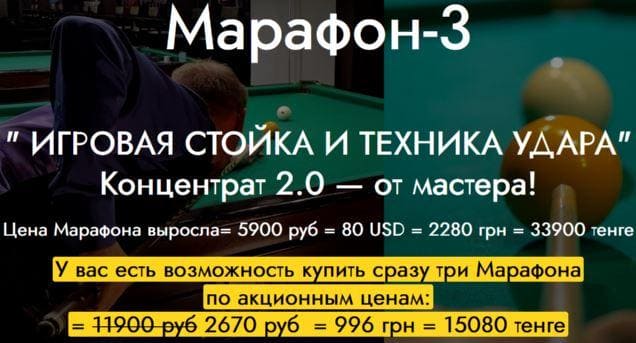 Марафон-1 «Концентрат знаний по технике и стойке бильярда»