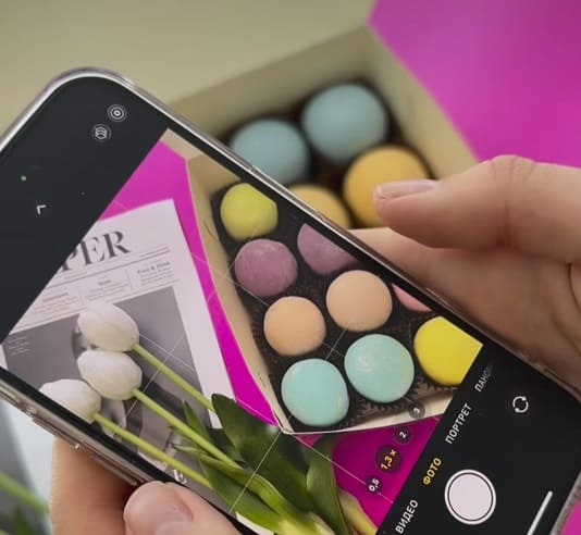 - Мята-Клубника-Каламанси. Начинка на основе творожного сыра и мяты. Центр из клубники и пюре каламанси (можно заменить на лимон). Яркий и интересный вкус