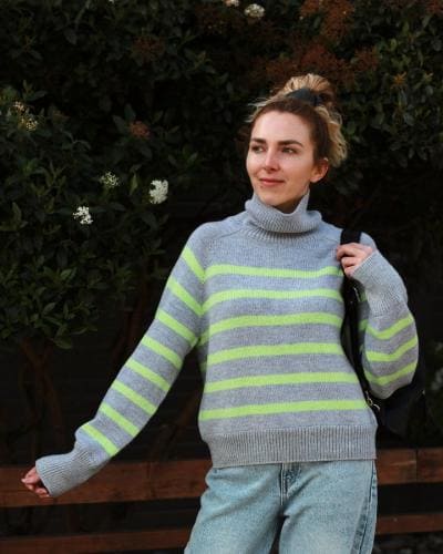 Ориентировочный расход на свитер с высокой горловиной и полосками 5 через 13: