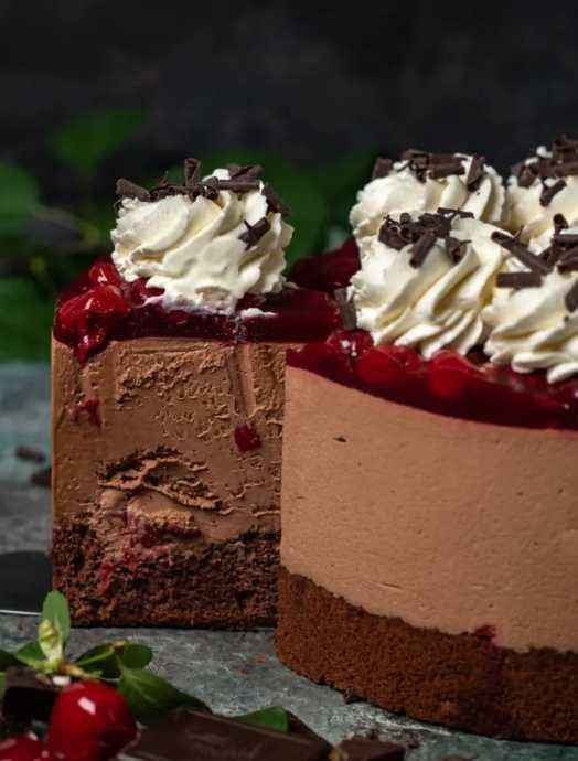 5. Невыпечной чизкейк «Чёрный лес» — знакомый вкус знаменитого торта нашел свое воплощение в потрясающем шоколадно-вишневом чизкейке