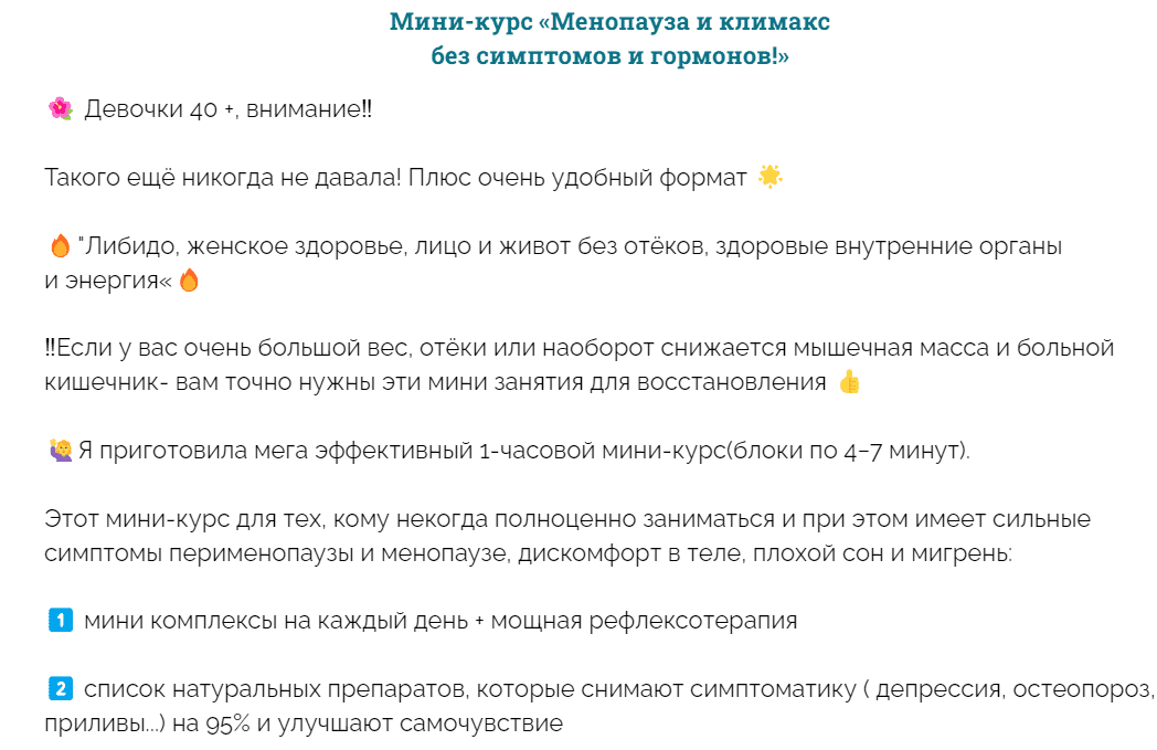Этот мини-курс для тех, кому некогда полноценно заниматься и при этом имеет сильные симптомы перименопаузы и менопаузе, дискомфорт в теле, плохой сон и мигрень: